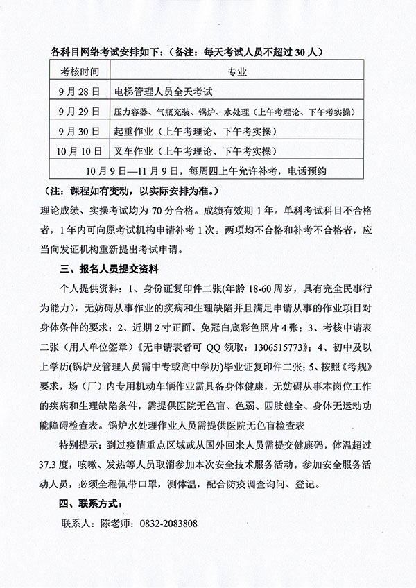 2020年春生公司06期特種設(shè)備作業(yè)人員考核班通知