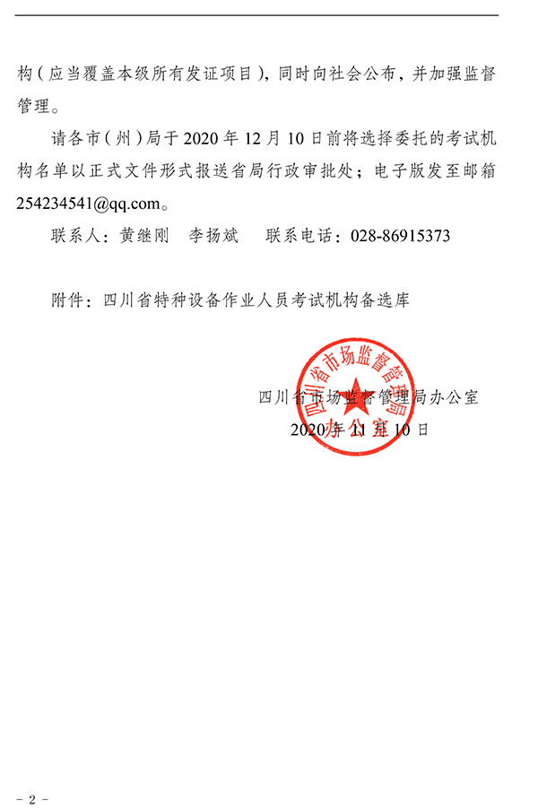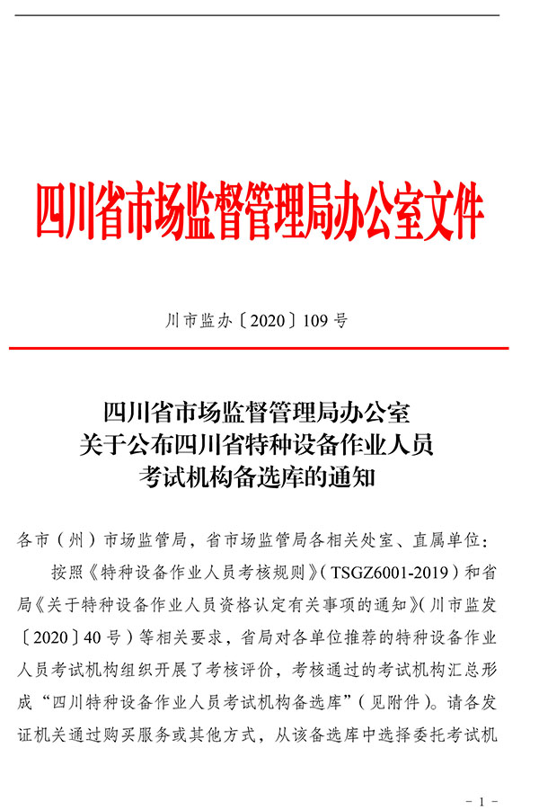 關(guān)于公布四川省特種設(shè)備作業(yè)人員考試機(jī)構(gòu)備選庫(kù)的通知