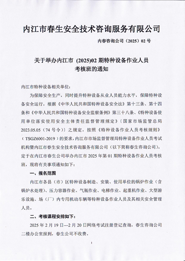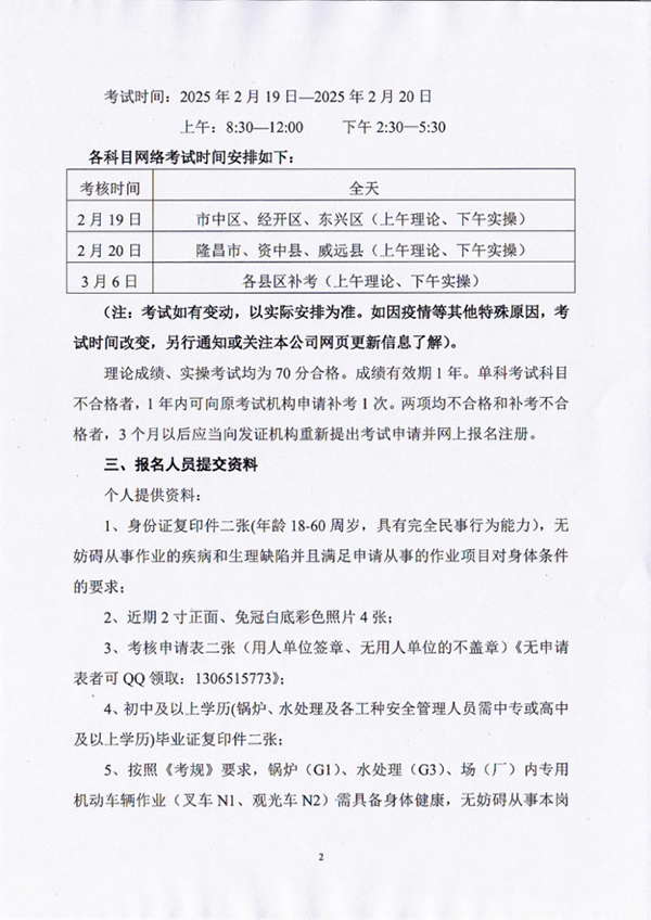 2025年春生公司第2期特種設(shè)備作業(yè)人員考核通知